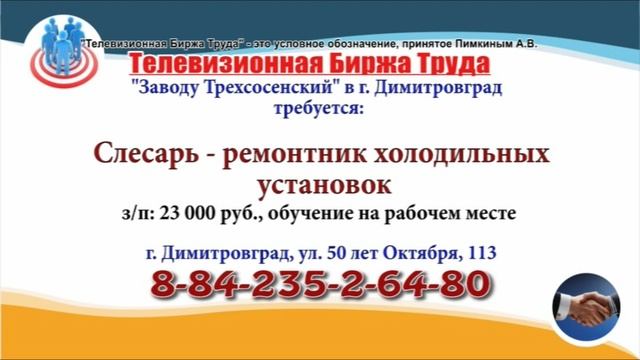 Вакансии и телефоны прямых работодателей в специализированной программе по трудоустройству "Телевизионная Биржа Труда" - г.Ульяновск