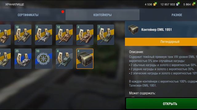 Открываю контейнеры EMIL 1951 до тех пор пока не получу танк! Wot Blitz