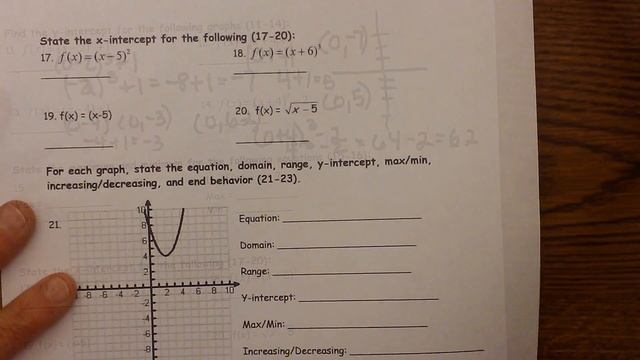 Finding the x and y-intercept of a function The first part of the video focuses on finding the y-intercept and the second portion focuses on the x-intercept. Here is a handy dandy guide to help you skip ahead. 0:19 Find y-intercept of a cubed function 1:21 Find the y-intercept of an absolute value equation 2:01 y-intercept of a linear equation 2:17 y-intercept cubic function 2:49 x-intercept of a quadratic equation 4:54 x-intercept of a cubic function Related videos for finding x and y-intercepts of a function For a Quadratic Function find Vertex, Axis of Symmetry, Domain and Range, Intercepts https://www.youtube.com/watch?v=Rshj4GqS2hU X-Intercepts and Y-Intercepts of a Functions and Finding Them! Example 1 https://www.youtube.com/watch?v=CtW74iasNEU Related websites for graphing and intercepts of function Graphing functions http://www.purplemath.com/modules/grphquad3.htm Finding X-Intercepts and Y-Intercepts http://mathequalslove.blogspot.com/2016/01/finding-x-intercepts-and-y-intercepts.html -~-~~-~~~-~~-~- Please watch: "Study Skills Teacher's Secret Guide to your Best Grades" https://www.youtube.com/watch?v=f3bsg8gaSbw -~-~~-~~~-~~-~-