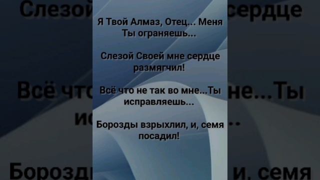 ХРИСТИАНСКИЕ ПЕСНИ ДЛЯ ХВАЛЫ ПОКЛОНЕНИЯ ПРОСЛАВЛЕНИЯ ВООДУШЕВЛЕНИЯ ЕВАНГЕЛИЗАЦИИ ДУХОВНОГО РОСТА ПРОБУЖДЕНИЯ ВОЗРОЖДЕНИЯ #господь#музыка#христианская_музыка#музика#христианскиепесни#бог#христианскиестихи#любовь#христианство#стихи#песня#песни#иисус#иисусхристос#иисусмойбог#иисус_христос#иисусбог#иисусгосподь#хвалы_и_поклонения#хваление#хвала#прославление#духсвятой#духовныйрост#духовноепробуждение#духовность#евангелие#евангелизация#евангельскаявесть#духовный_рост#пробуждение#рождество#рождествохристово#божий#божийнарод#божьеслово #ХристианскаяПесня #ХристианскоеПоклонение #ХристианскаяНоваяПесня #ПастырьМоейДушы #ХристианскаяМузыка #ПесняСлавы #Иисус #ЛюбовьБожья #ХристианскиеТексты #СлаваГосподу #ВераИПоклонение #ВечнаяЛюбовь #RussianChristianSong #RussianChristianWorship #RussianChristianMusic #RussianWorship #NewRussianChristianMusic #RussianChristianMusic #RussianSongOfPraise #Jesus #GodsLove #ChristianLyrics #GloryToGod #RussianFaithAndWorship #EternalLove https://stihi.ru/avtor/zhanna70 РАСШИРЕННАЯ ВЕРСИЯ ПЕСНИ "Я - ТВОЙ АЛМАЗ, ОТЕЦ!" "В БЕСКОНЕЧНОМ ПОТОКЕ ЧУДЕС НАХОЖУСЬ!" СЛОВА, МУЗЫКА, ОБРАБОТКА: ЖАННА ВОЛКОВА-ВАРЛАМОВА Стихи Жанна Юрьевна Волкова-Варламова https://stihi.ru/2025/02/15/1964 В бесконечном потоке чудес нахожусь... В силе Твоей каждый день обновляюсь! В присутствии Твоём от земли оторвусь... У алтаря в молитве Огнём очищаюсь!!! Припев: Я Твой Алмаз, Отец... Меня Ты ограняешь... Слезой Своей мне сердце размягчил! Всё что не так во мне...Ты исправляешь... Борозды взрыхлил, и, семя посадил! Что я могу, Господь, и что мне явлено? Кто я такой, Иисус, когда без Тебя? ! Душа, как птица в клетке... Она Подавлена... Попала туда, сама себя загубя!!! Припев: Я Твой Алмаз, Отец... Меня Ты ограняешь... Слезой Своей мне сердце размягчил! Всё что не так во мне...Ты исправляешь... Борозды взрыхлил, и, семя посадил! Ты дал мне сердце, Бог, как капля чистая... Без всякой примеси, что есть у янтаря! Чтобы почва моя была не каменистая... Чтобы на ней могла резвиться детвора! Бридж (Bridge) Где льётся Благодать, там прикасаюсь... Чтоб чудо Твоё навеки сохранить! Под гнётом судьбы я не прогибаюсь... Твоя сила в душе помогает мне жить!!! Припев: Я Твой Алмаз, Отец... Меня Ты ограняешь... Слезой Своей мне сердце размягчил! Всё что не так во мне...Ты исправляешь... Борозды взрыхлил, и, семя посадил! 14..02.2025 Жанна Волкова-Варламова