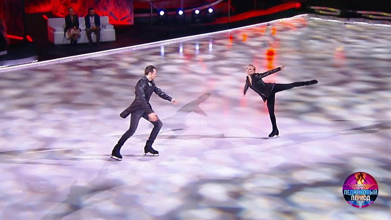 На льду – актер Евгений Пронин и двукратная олимпийская чемпионка Сочи Татьяна Волосожар. Они танцуют под песню «Я свободен» в исполнении Валерия Кипелова.