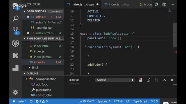 In this video, we are going to learn about TypeScript and the features that can be helpful for developing good object oriented javascript code. We will also learn to build a Todo application using TypeScript. We will learn about type system in typescript, how typescript infers return types, union types, generics, function overloading, enum, class implements and extends, interfaces, enums and much more. Exercise Files: https://github.com/vinutha91/TypeScript_Essentials_Training Did you know JavaScript? Playlist: https://www.youtube.com/watch?v=jALVI6vlzEM&list=PL0mRS18SFRZN9M1FQn1Ay0396wygqoiDn You can check our ES6 training here: https://www.youtube.com/watch?v=Za6MUDcLeNM&list=PL0mRS18SFRZPgNGI16ej3_BUGLpDcMrdE If you like this, please share your feedback. Email us at javascript.everyday@gmail.com