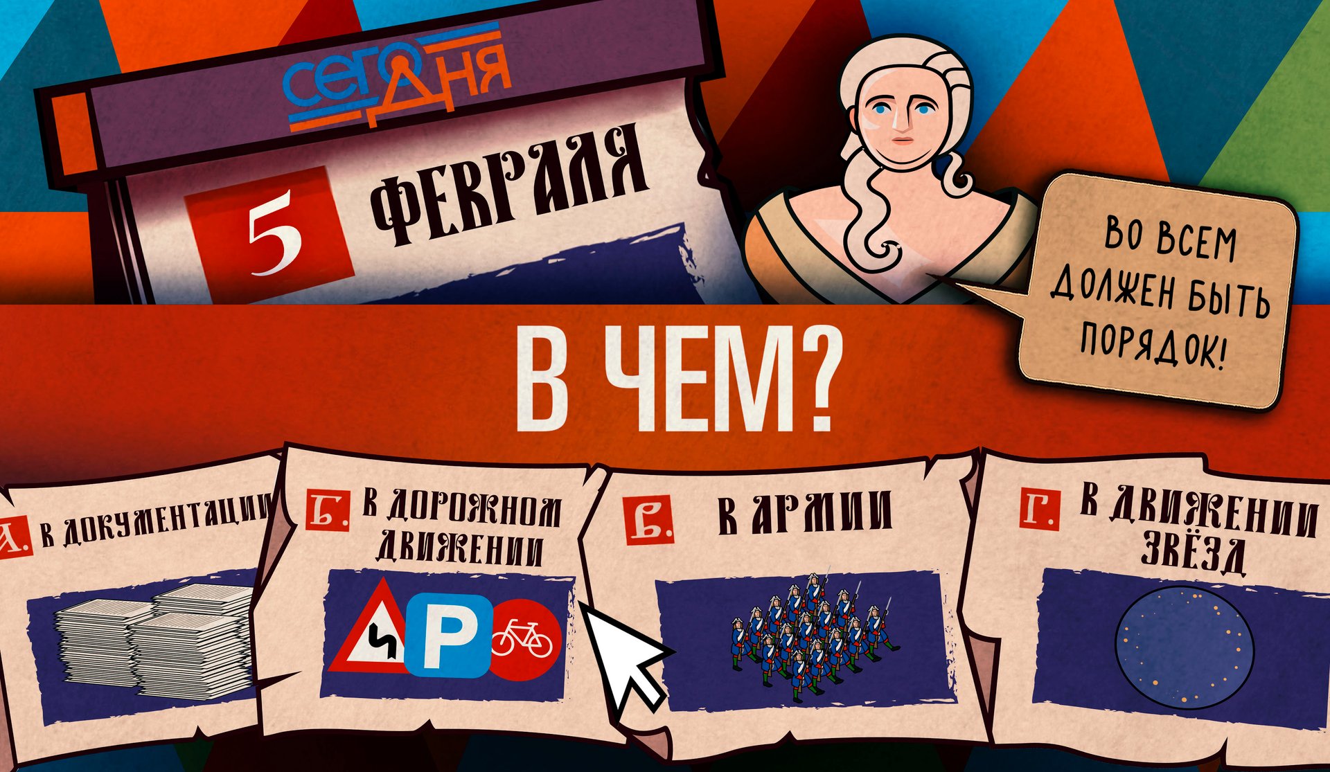 Сегодня день разукрашивания планов на будущее! А на сколько красочны ваши планы? В чем Елизавета Петровна попыталась устроить порядок в 1752 году? Отгадай, что случилось «Сего дня»!