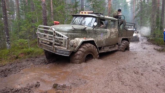 Поездка проходит в Нелидовском районе, мы приехали из Твери и преодолели на грузовиках 250 километров. Я был уверен, что лучше ЗИЛа на арочных никто не поедет. Но укороченный ЗИЛ 131 6х6 на колёсах от КРАЗа показал просто фантастический результат! Этот грузовик является самоделкой, которую разработал и собрал местный Кулибин. В целом состав колонны очень интригующий, есть все классы внедорожников, начиная от стандартных Нив и УАЗов, заканчивая заряженными грузовиками. участие принимает даже самодельный Bigfoot Додж, собранный на базе ГАЗ 66. Болото было на столько коварно, что каждый джипер нашёл придел своему вездеходу!