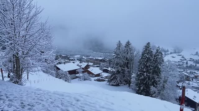 Снегопад в самых красивых горных деревнях Швейцарии - Расслабляющая снежная прогулка!...