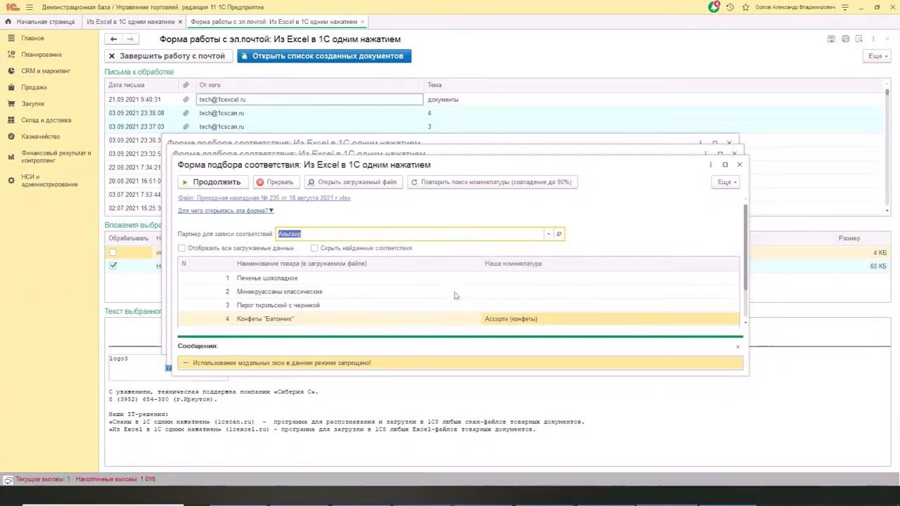 Загрузка документов в 1С прямо из писем эл почты