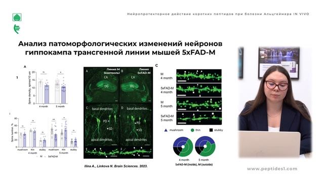 Нейропротекторное действие коротких пептидов в модели болезни Альцгеймера In vivo