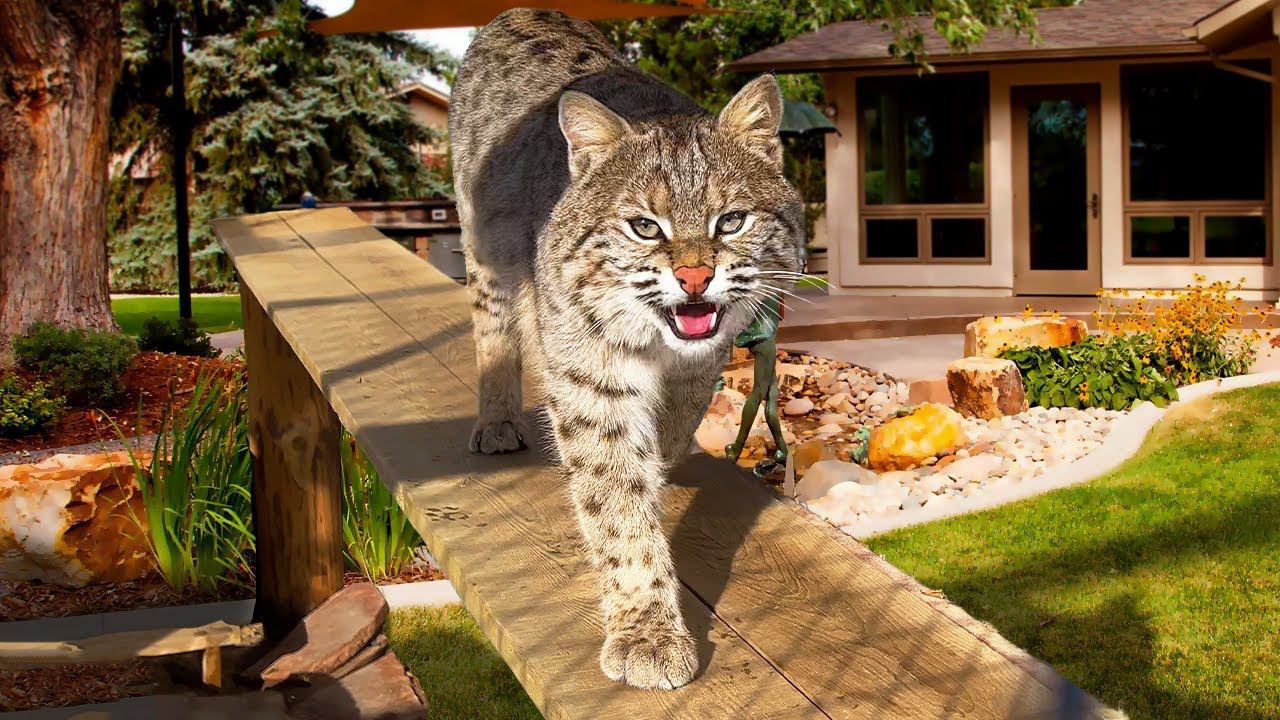 Бобкэт Руфус почувствовал зов природы / Сервал Микки испытал приступ нежности на прогулке