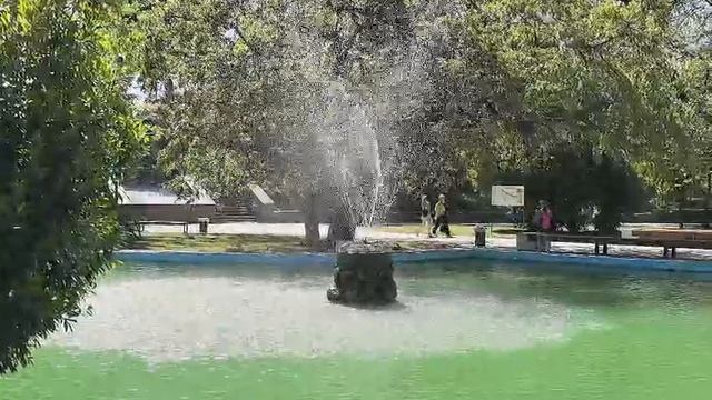 Крутящийся фонтан на фоне каркаса западного. Видео Л.П. Юрчишко