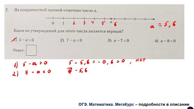 ОГЭ. Математика. Задание 7. На координатной прямой отмечено число а ...