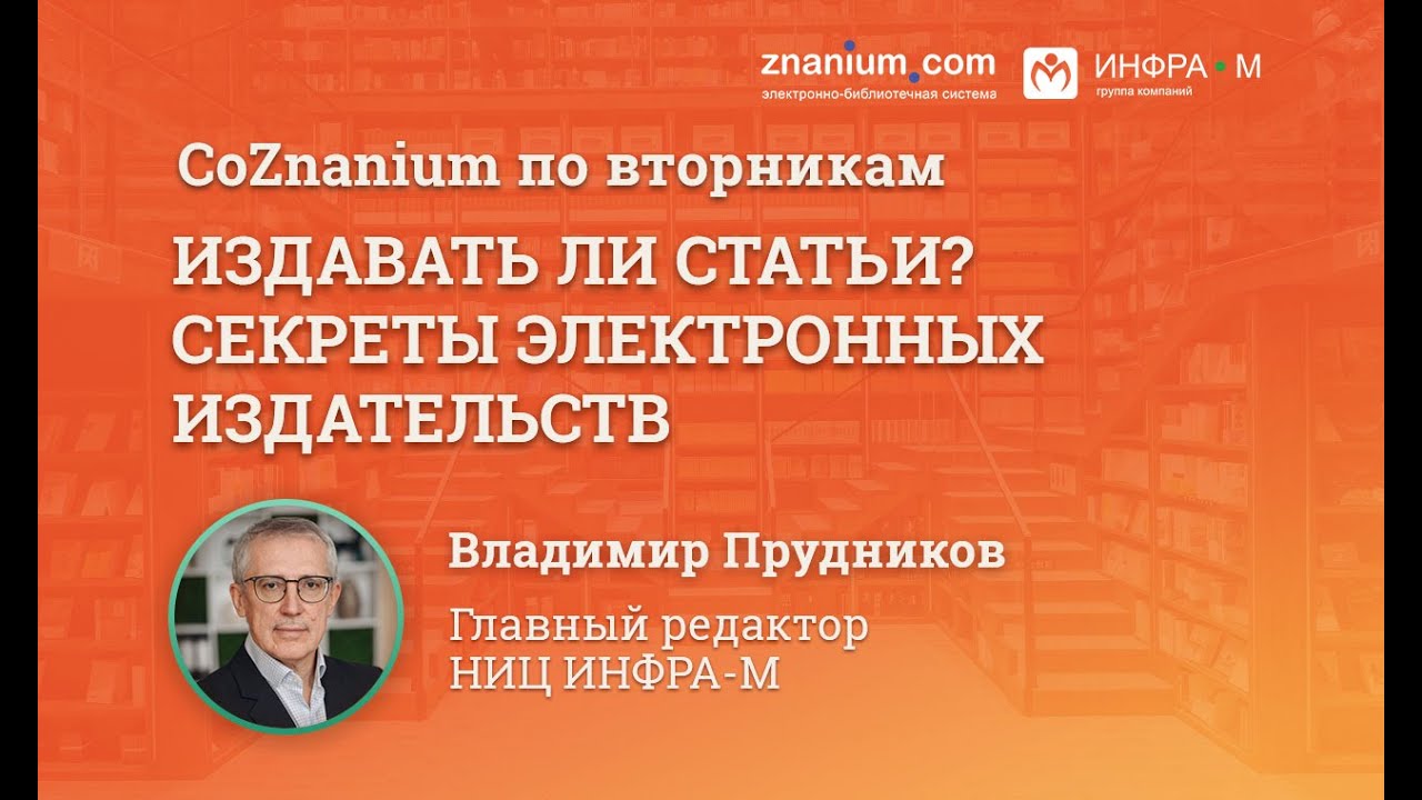 Издатель, преподаватель, кандидат экономических наук Владимир Прудников делится профессиональной точкой зрения об особенно актуальных проблемах книгоиздания, обучения, открытой науки, также отвечает на вопросы зрителей. В этом видео: • Книгоиздание: каким публикациям нужен издатель? • Электронное издательство: вкалывают роботы, а не человек? • Традиционное обучение VS дистанционное обучение. • Как открытая наука представлена в России?