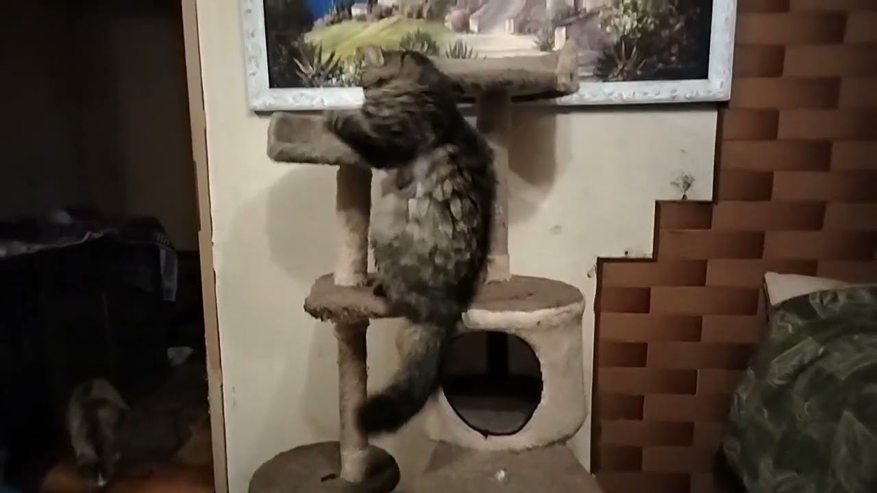 Котику Кеше очень нравится когтеточка