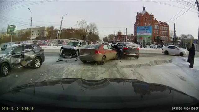 Девушка устроила массовое ДТП в Омске, проехав на красный свет.