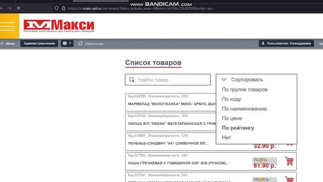 Сделать сортировку в разделе Список товаров.