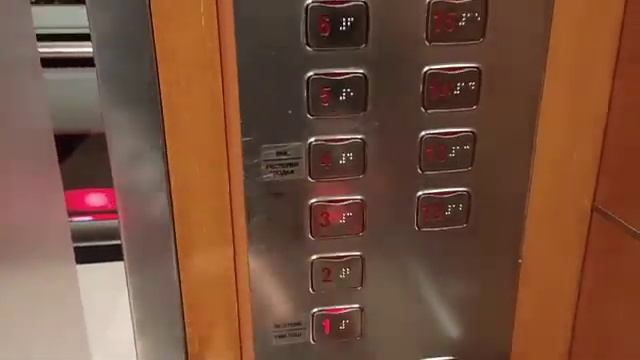 (Переснято в вечернее время) 5 Лифтов LG International 2005 г. (3 панорамных) @ ТЦ Lotte Plaza