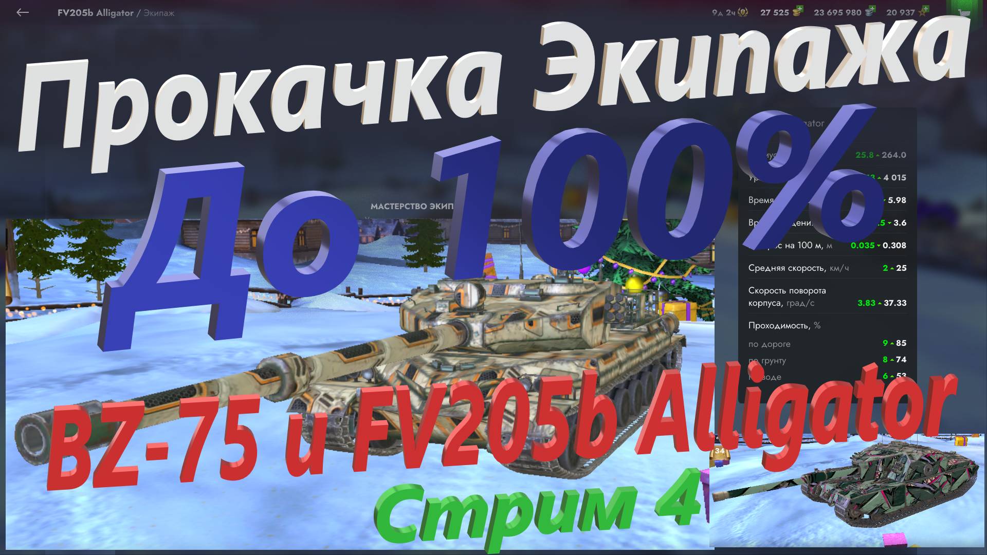 Прокачка Экипажа на 100% - BZ-75 и FV205b Alligator - Стрим 4