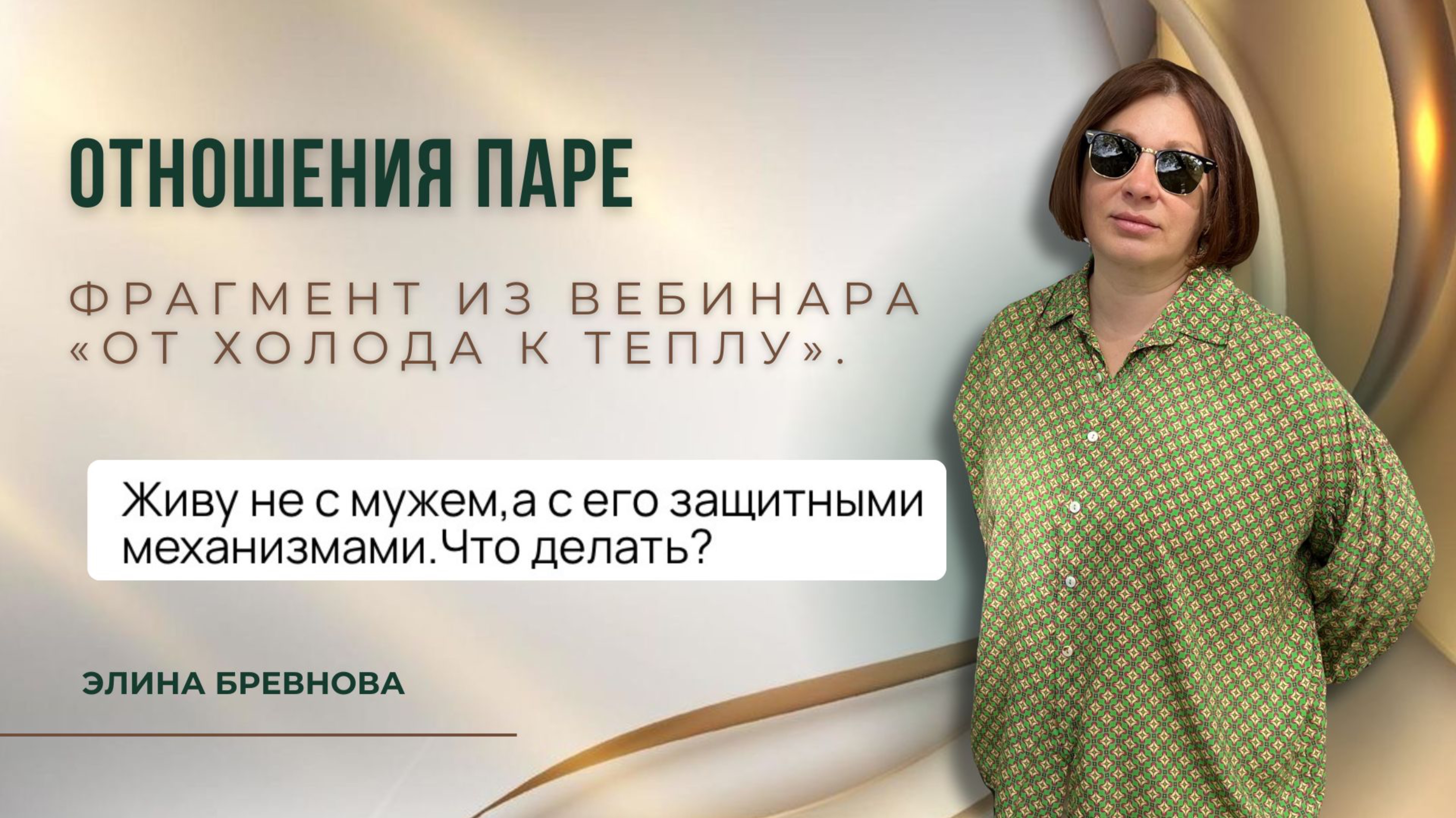 Посмотреть продолжение вебинара можно по ссылке ➡️ https://school.brevnovaelina.com/Web3004 Это был один из самых заряженных и честных вебов, погрузились на самую глубину ЭТОТ ВЕБИНАР ДЛЯ ТЕБЯ: ЕСЛИ ТЫ В ОТНОШЕНИЯХ, НО: ➖ Вы с мужем живете как соседи. Всё сводится к быту и детям, а разговоры только по делу. Тепло и близость потеряны ➖ Ты устала быть сильной и всё тянуть на себе. Поддержки — ноль. Он или критикует, или молчит. А ты будто одна в этих отношениях и вся ответственность на тебе ➖ Ты всё чаще думаешь: «А что, если это не мой человек?» Но страшно менять что-то — дети, общий быт, чувство вины и страх, что лучшего не встретишь ЕСЛИ ТЫ СЕЙЧАС ОДНА: ➖ Хочешь отношений, где можно быть собой, а не подстраиваться и доказывать свою ценность ➖ Всё ещё живёшь в страхе: что снова будет больно, снова придётся или спасать, или заслуживать любовь ➖ Боишься, что так и останешься одна: хотя мечтаешь о тёплом, надежном «своем» человеке рядом Делилась новой уникальной информацией, живыми историями клиентов и своим личным опытом. Запись доступна только по 7 мая, а потом этот вебинар станет платным, ибо он получился МЕГА ценным! __________________________________ Подписывайтесь на мои соцсети: Телеграм канал: https://t.me/+--DufNH8ZeI0MjNi ВКонтакте: https://vk.com/elinabrevnova Канал YouTube: https://youtube.com/channel/UCKShJeYON6cuDZvXvzrTH8g Все мои программы: https://taplink.cc/elina_brevnov *Инстаграм: https://instagram.com/elina_brevnova *Принадлежит Meta, признана экстремистской организацией, запрещена на территории РФ