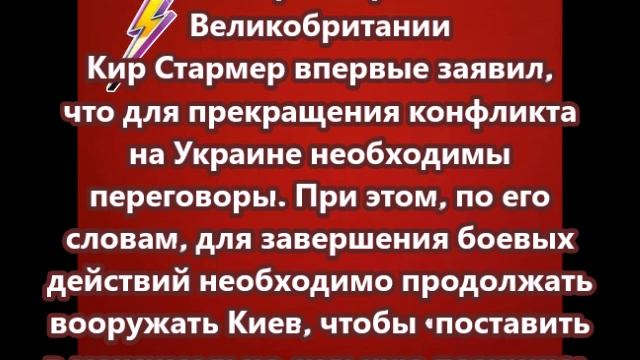 Премьер Великобритании Кир Стармер впервые заявил, что для прекращения конфликта на Украине необходимы переговоры