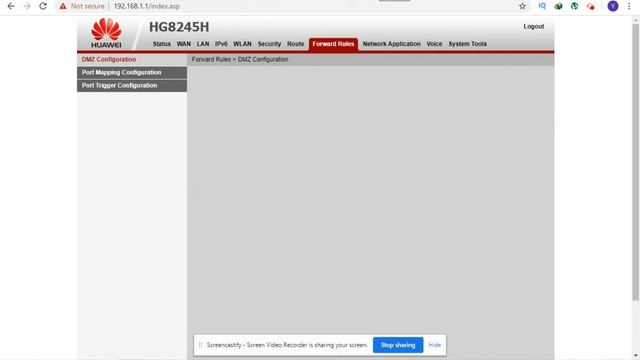 How to port forward using DMZ protocol in Huawei HG8245H