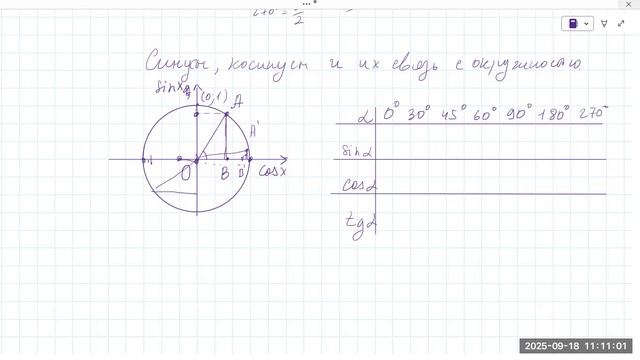1809 связь синуса и крсинуса с окружостью