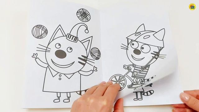 ТРИ КОТА. РАСКРАСКА С МЕЛКАМИ. ЖЁЛТАЯ
