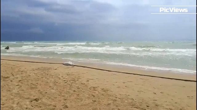 Анапа пляж Витязево сегодня 16 июня 2025. Море штормит, погода в Анапе сейчас. Мазута нет на пляже