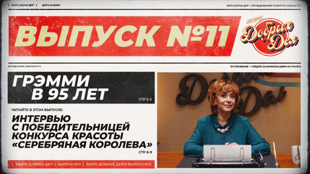 Добро пожаловать на канал «Бюро Добрых Дел»! Его глава – это я, Лариса Брохман. А миссия нашего Бюро – искать самые добрые и хорошие новости по всему миру, чтобы рассказать их вам. В этом выпуске: - Как выиграть «Грэмми» в 95 лет? - Картина провисела вверх ногами 77 лет! - Ксения Егорова в «Добром репортаже» отправилась на улицы Москвы, чтобы опросить мужчин и узнать, готовы ли они уйти в декрет вместо своих жён. - Специальный гость Ольга Губаева рассказывает, как выиграла в конкурсе красоты «Серебряная королева»! Эти и другие добрые новости мы собираем регулярно, чтобы поднять вам настроение сделать ваш день чуточку радостнее и светлее. По вопросам рекламы пишите на sales@rutube.ru