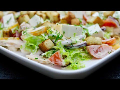 Салаты с куриным филе очень популярны. Приготовьте этот вариант салата на праздник! РЕЦЕПТ: листья салата 1/2 пучка болгарский перец 1 шт лук сладкий синий 1 шт помидоры черри 200 г сыр фета 150 г укроп по вкусу куриное филе 300 г соль и перец по вкусу оливковое масло для жарки батон 4 ломтика соевый соус 1 ч л оливковое масло 1 ст л приправа прованские травы 1 ст л чеснок 2 зубчика майонез по вкусу (так же салат можно заправить любой заправкой по вашему вкусу)