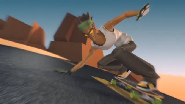 Скейтбордист преодолевает крутой спуск...