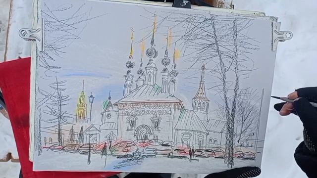 ПРОгулки Художника по городу. Праздник продолжается... А я рисую, мёрзну и греюсь. #Суздаль, 05.01.2025/1 (Есть полный вариант рисования, выложу позже)