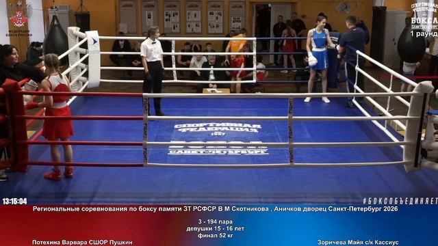 194 финал 52 кг Б Потехина Варвара СШОР Пушкин Зоричева Майя ск Кассиус