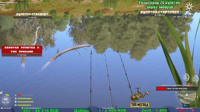 Поддержка донатом https://new.donatepay.ru/@1032463 Альтернативный донат https://www.donationalerts.com/r/kalyamba11 5536913964533059 карта Тинькоф Если стрим лагает,смотри стрим на трово https://trovo.live/s/Kalyamba_na_Ribalke Мой ВК - https://vk.com/kalyantv НИК в игре kalyan11 НАШ ДИСКОРД СЕРВЕР https://discord.gg/pFsEn9e9 Заказ водоема на 1 час - 500р ( весь стрим 2500р ) Модерка на канале 1200р ( каждая следующая на 100р больше) Озвучка доната на 40р,50р,100р,200р,300р,500р,1000р ✅Призы в рулетке "ЗОЛОТАЯ" ✔ ЗОЛОТО ✔ ПРЕМ ✔ КАТУШКИ ЮБИЛЕЙНАЯ БОРЕЛИКА, ВЕНГИ, ТАЙГА, СИЛЬВЕР 80, И другие ✔ ПАЛКИ ПИЛКЕРНАЯ, ДОНКА МОРСКИЕ, ✔ РОД ПОД, СТУЛЬЯ ✅Призы в рулетке СТАНДАРТ : ✔ катушкИ ЮБИЛЕЙНАЯ БОРЕЛИКА, ВЕНГИ, ТАЙГА, СИЛЬВЕР 80, И другие ✔ катушки 60 для медного ( ЭВИИ, НАТОРЫ, ГОЛДА, и тд) ✔ ПИЛКЕРНОЕ УДИЛИЩЕ КОРОЛЕВА ОКЕАНА ✔ Морское Донное удилище ✔ прем ( 3, 7, 30 дней) ✔ золото ( 1, 3, 5, 10, 20 ,50) ✔ билет на море ( 1, 3, 5 дней) ✔ голд наживка и др. ✅Призы в рулетке "СТАРТОВАЯ" ✔ катушка "silver80" ✔ катушка "БЕЛЫЙ КАЛИБР" ✔ катушка "Черный калибр" ✔ катушка "Протон" ✔ катушка "Нарга 6000" ✔ Набор Фидерист и спинингист ✔ Карповик Фортуна ✔ фидерные удилища ✔ прем, золото, алкашка, наживки и тд P.s Рулетка это не казино, а награда за поддержку стримера. Вечный ТОП ПОДДЕРЖКИ (11.05.2024) 1. Dimon_pokemonchik 119 784 2. Interceptor 75 508 3. Skreb79 71 261 4. une personne 68 619 5. Нарвал77 31 550