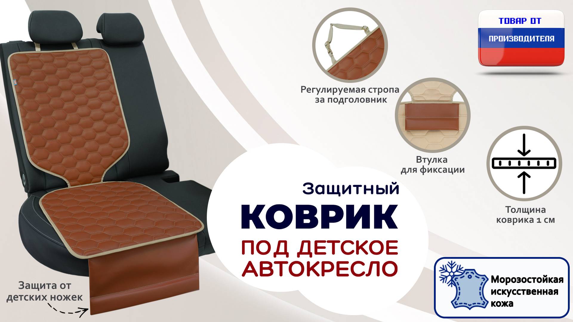 Защитный коврик под кресло или бустер. Иск. кожа. Соты. Цвет: св.коричневый с бежевым. Промо-ролик.
