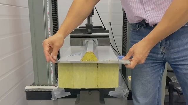 Испытание на определение предела прочности образца ТСП-панели при четырёхточечном изгибе