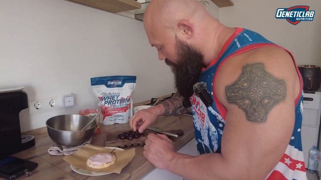 Сегодня готовим трендовое мороженое-сендвич и для рецепта нам понадобится: ▪️Хлебец карамельный 1 шт; ▪️Шоколад без сахара 65 гр; ▪️Масло растительное 5 гр; ▪️Йогурт греческий 25 гр; ▪️Geneticlab Whey PRO strawberry; ▪️Черешня 15 гр. Шоколад и растительное масло растопить на водяной бане. Отдельно смешать греческий йогурт и протеин. Из черешни достать косточки. На пергаментную бумагу выложить шоколад по форме хлебца тонким слоем, хлебец, йогурт с протеином, черешню, покрыть всё шоколадом. Убрать в морозилку примерно на час. Готово! Приятного аппетита! КБЖУ: 279/16/16/17 Сайт: https://geneticlab.ru/ ВКонтакте: https://vk.com/geneticlab_official Instagram: https://www.instagram.com/geneticlab_...