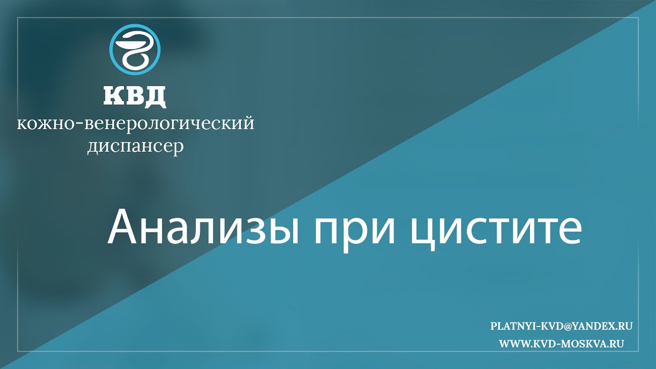 Циститом называют заболевание молодого возраста, когда при инфицировании мочевого пузыря возникает его непосредственное воспаление. Чаще всего настигает женщин, из-за характерного строения их мочеполовой системы. Подробнее: https://kvd-moskva.ru/analizy-pri-cistite/ Для подробной консультации по этому вопросу, обращайтесь в платный центр КВД-Москва. Телефоны: 8 (495) 642-30-37, 8 (495) 532-66-57 e-mail: platnyi-kvd@yandex.ru Cайт: http://kvd-moskva.ru Instagram: https://www.instagram.com/kvd.moskva/