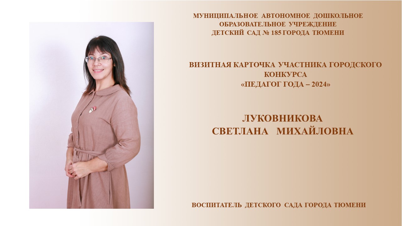 Визитная карточка участника городского конкурса "Педагог года - 2024" Луковниковой С.М.
