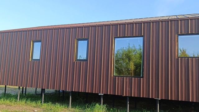 СИП-дом обшили железом, не до конца.