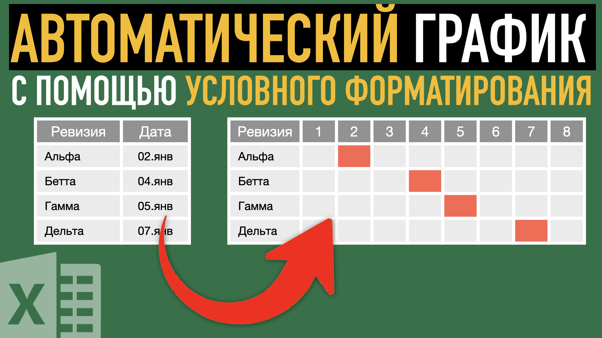 👉 Курс по Word и Excel - https://andreysukhov.ru/shop Условное форматирование в Excel позволяет автоматизировать различные процессы, например, создать график ревизий на основе вручную заполненной таблицы. В таком графике ячейка заливается цветом при выполнении двух условий. Видео по теме: ► Абсолютные ссылки: https://rutube.ru/video/b9b1b0c1df4ffd8654fd53661c4e0c23/ ► Условное форматирование: https://rutube.ru/video/690081c31668b1e5e4d635df997b5465/ ► Числовой формат: https://rutube.ru/video/451096fac6ee9f85f8d456d528208aad/ Дополнительные материалы: ➤ Скачать файл с примером: https://disk.yandex.ru/d/9bn0e530ghK8ng ➤ Текстовая версия: https://dzen.ru/a/Y4W4TlI4VX6dTfAG ★ Телеграм: https://t.me/excelmate