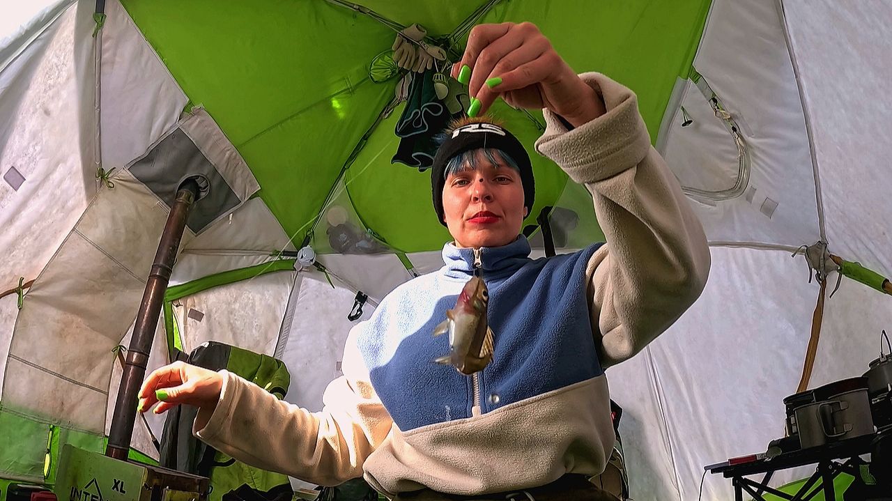 Зимний поплавок НА ГЛУБОКОМ ОЗЕРЕ. Рыбалка с ночёвкой #556