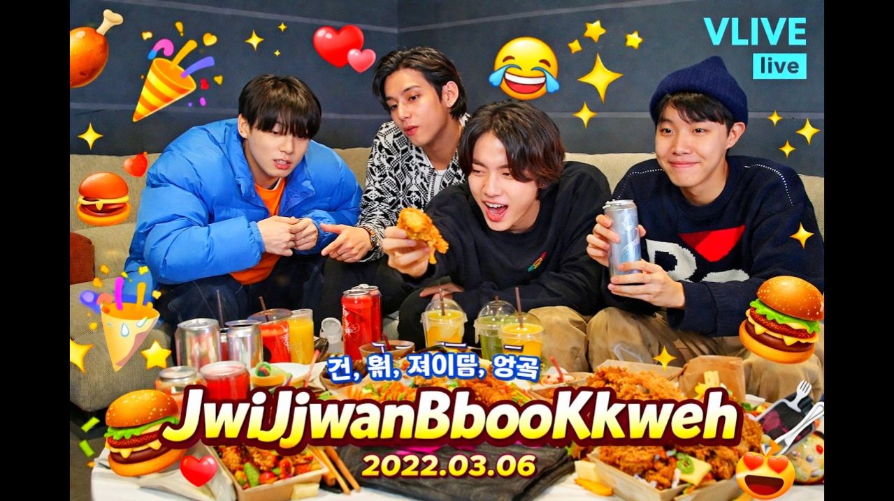 VLIVE live Джина, Ви, Джей-Хоупа и Чонгука JwiJjwanBbooKkweoh 2022.03.06