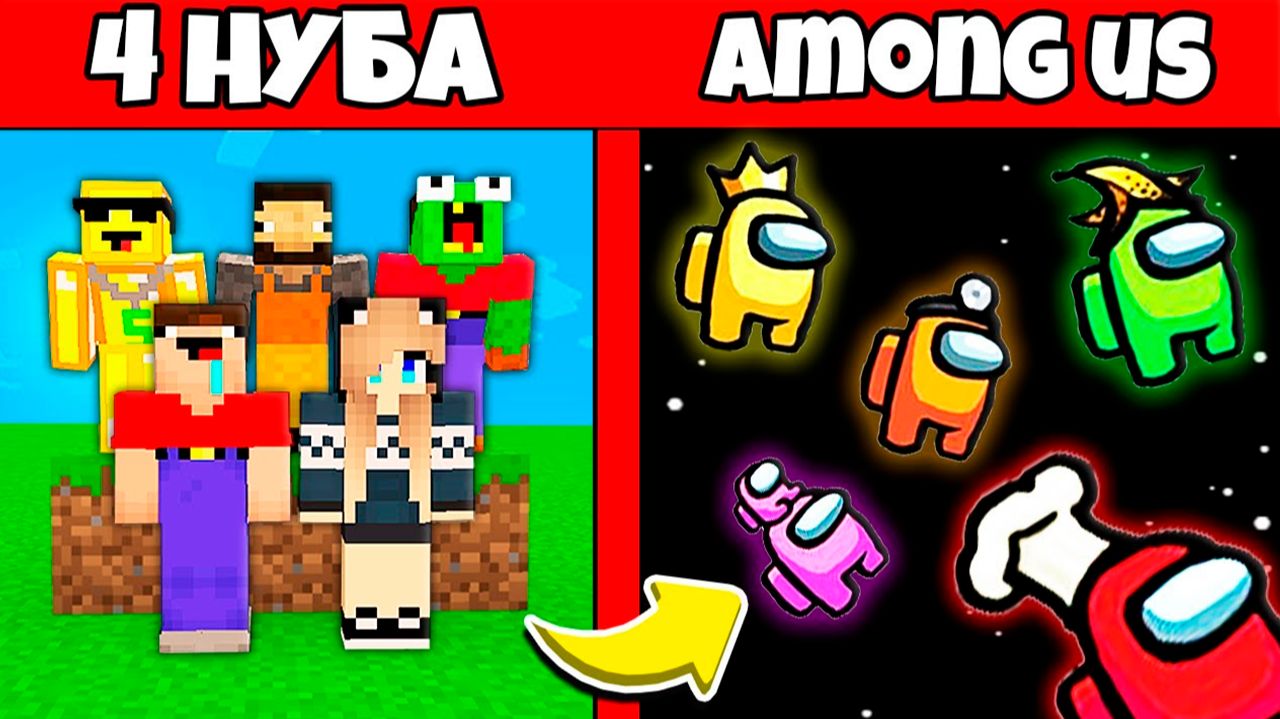4 НУБА И ДЕВУШКА ПРО ПРЕВРАТИЛИСЬ В ПРЕДАТЕЛЕЙ AMONG US В МАЙНКРАФТ