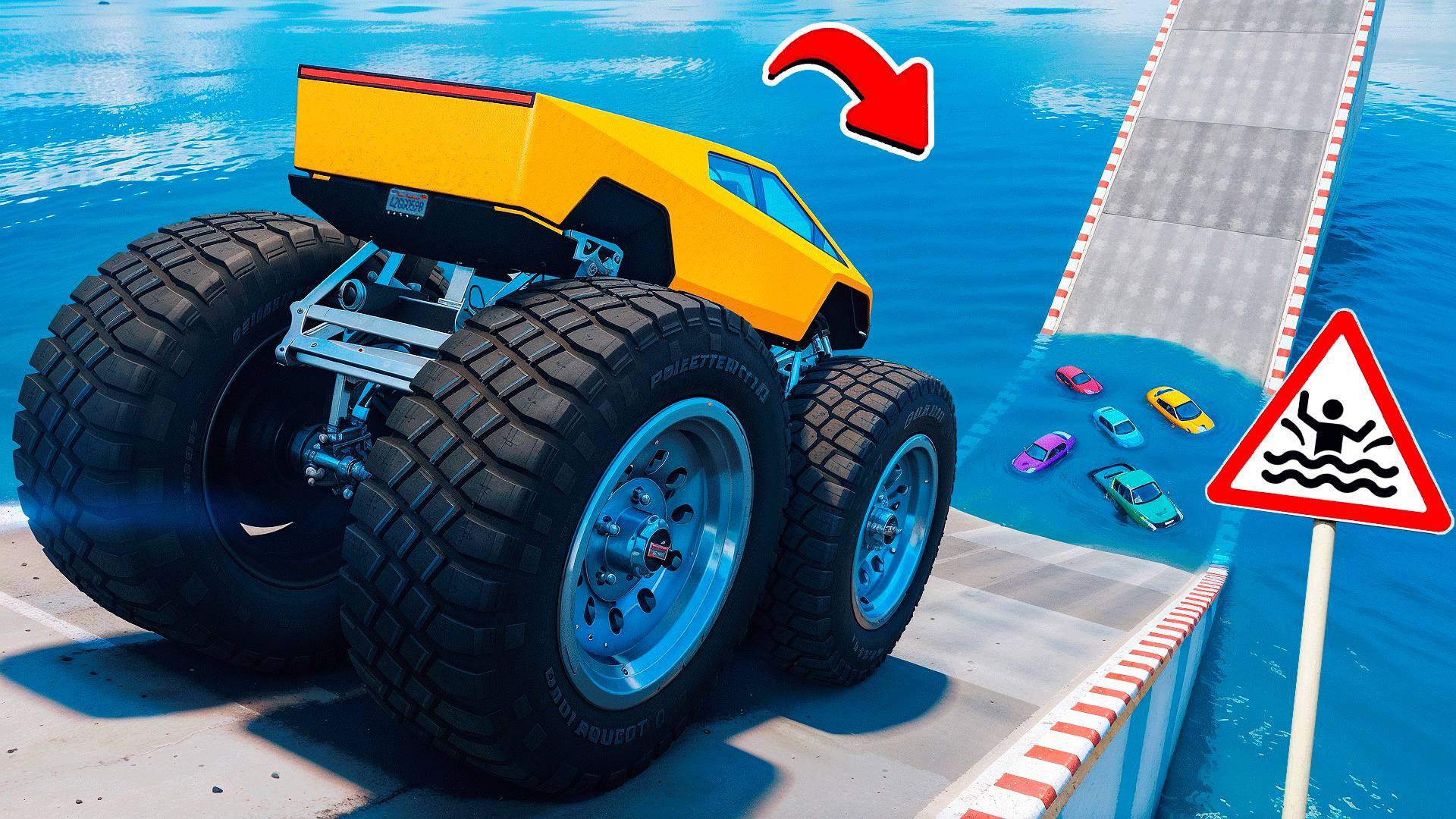 СМОЖЕТ ЛИ ГИГАНТСКИЙ ТЕСЛА КИБЕРТРАК ПРОЕХАТЬ БОЛЬШУЮ ЛУЖУ В ГТА 5 МОДЫ - ЭКСПЕРИМЕНТЫ в GTA 5 MODS
