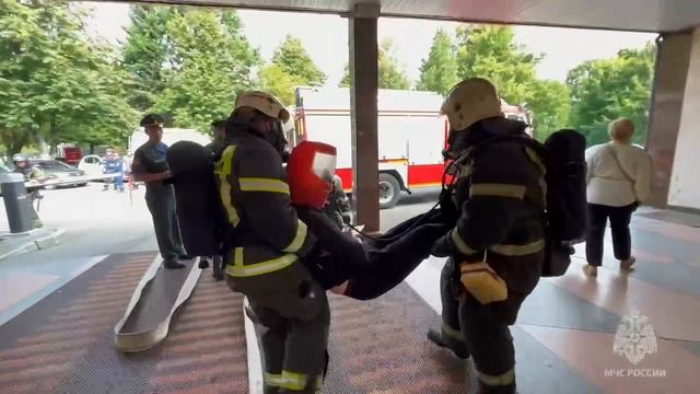 Сотрудники МЧС отработали действия по ликвидации условного пожара и эвакуацию больных в медицинском учреждении города Калининграда.