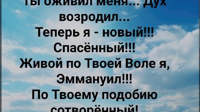 ХРИСТИАНСКИЕ ПЕСНИ ДЛЯ ХВАЛЫ И ПОКЛОНЕНИЯ ПРОСЛАВЛЕНИЯ ВООДУШЕВЛЕНИЯ ЕВАНГЕЛИЗАЦИИ ДУХОВНОГО РОСТА ПРОБУЖДЕНИЯ #господь#музыка#христианская_музыка#музика#христианскиепесни#бог#христианскиестихи#любовь#христианство#стихи#песня#песни#иисус#иисусхристос#иисусмойбог#иисус_христос#иисусбог#иисусгосподь#хвалы_и_поклонения#хваление#хвала#прославление#духсвятой#духовныйрост#духовноепробуждение#духовность#евангелие#евангелизация#евангельскаявесть#духовный_рост#пробуждение#рождество#рождествохристово#божий#божийнарод#божьеслово https://stihi.ru/avtor/zhanna70 "СРЕДИ МНОЖЕСТВА ЗВЁЗД, ТЫ МОЯ ЗВЕЗДА!" СЛОВА, МУЗЫКА, ОБРАБОТКА: ЖАННА ВОЛКОВА-ВАРЛАМОВА Стихи Жанна Волкова-Варламова https://stihi.ru/2025/01/02/3284 Благодарю Тебя, Иисус, за новое всё... За то, что дал в Себе мне рождение. Снял с меня Ты, Господь, грязь и позор... Дал из бедствий всех мне вызволение. Припев: Ты оживил меня... Дух возродил... Теперь я - новый!!! Спасённый!!! Живой по Твоей Воле я, Эммануил!!! По Твоему подобию сотворëнный! Ты спасал душу мою не раз из беды... Жизнь даровал в Себе мне иную. Шаги мои на пути Твоëм, Бог, утверди... Чтобы быть мне с Тобой, одесную. Припев: Ты оживил меня... Дух возродил... Теперь я - новый!!! Спасённый!!! Живой по Твоей Воле я, Эммануил!!! По Твоему подобию сотворëнный! Ты преображаешь всё во мне... И, новое, Своё даруешь!!! Очищаещь сердце моё в Огне... От боли и ран его врачуешь! Среди множества звёзд Ты моя Звезда... Буду воспевать Твоё имя, восхваляя. Ты со мной...мне не страшна больше беда. Вера моя пусть растёт, никогда не тая! Припев: Ты оживил меня... Дух возродил... Теперь я - новый!!! Спасённый!!! Живой по Твоей Воле я, Эммануил!!! По Твоему подобию сотворëнный! Ты оживил меня... Дух возродил... Теперь я - новый!!! Спасённый!!! Живой по Твоей Воле я, Эммануил!!! По Твоему подобию сотворëнный! 02.01.2025 Жанна Волкова-Варламова