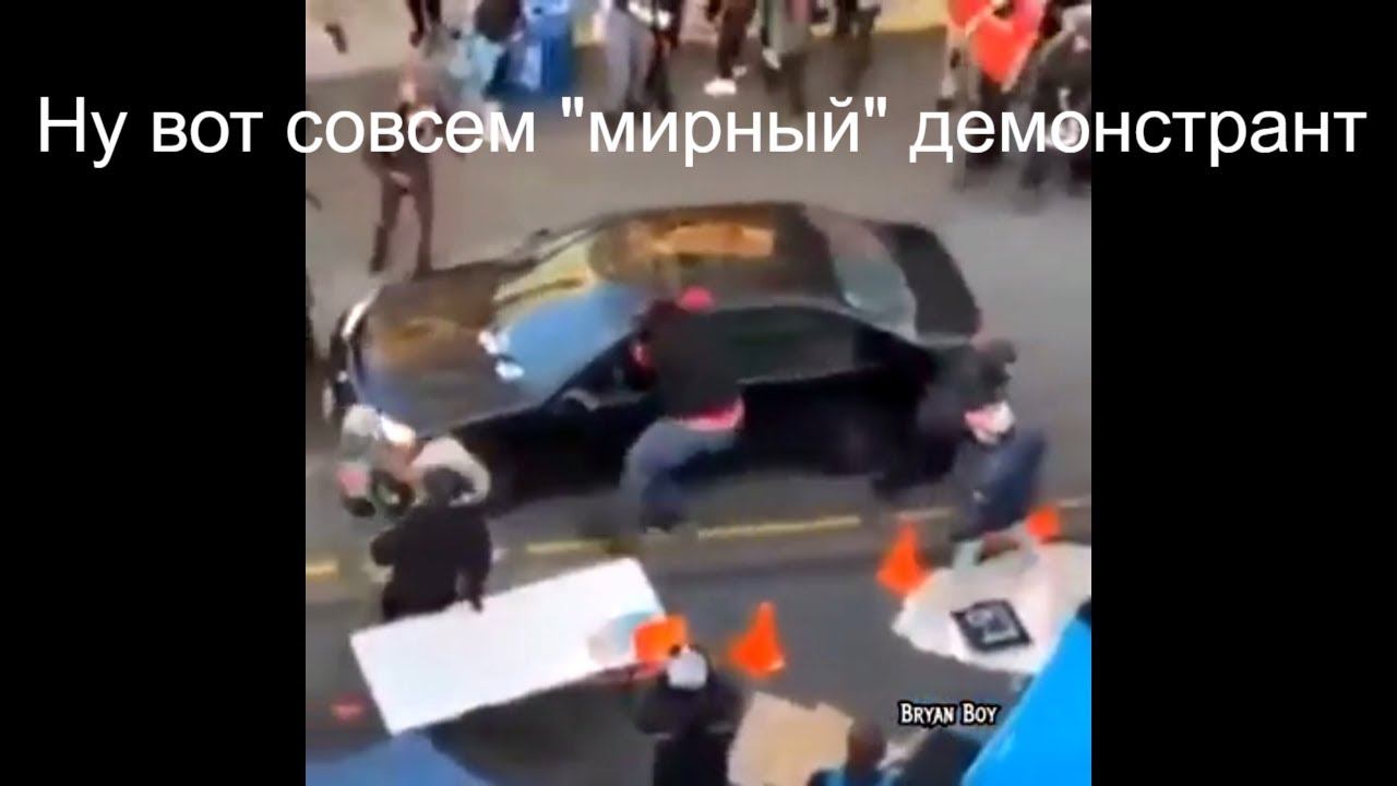 Водитель случайно заехавший на "мирную" демонстрацию