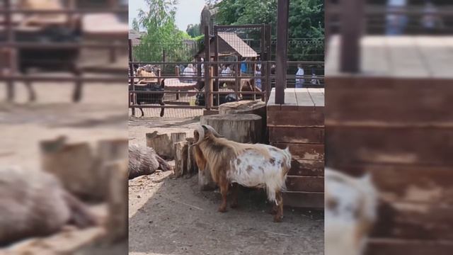 Уникальные кадры жизни копытных животных, Лама не реагирует на Барана гуляющего рядом в вольере.