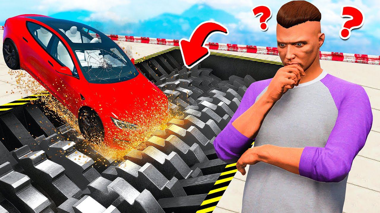 СПУСК БЕЗ ТОРМОЗОВ В ОГРОМНУЮ ДРОБИЛКУ В ГТА 5 МОДЫ! ЭКСПЕРИМЕНТ ОБЗОР МОДА GTA 5 MODS ОНЛАЙН