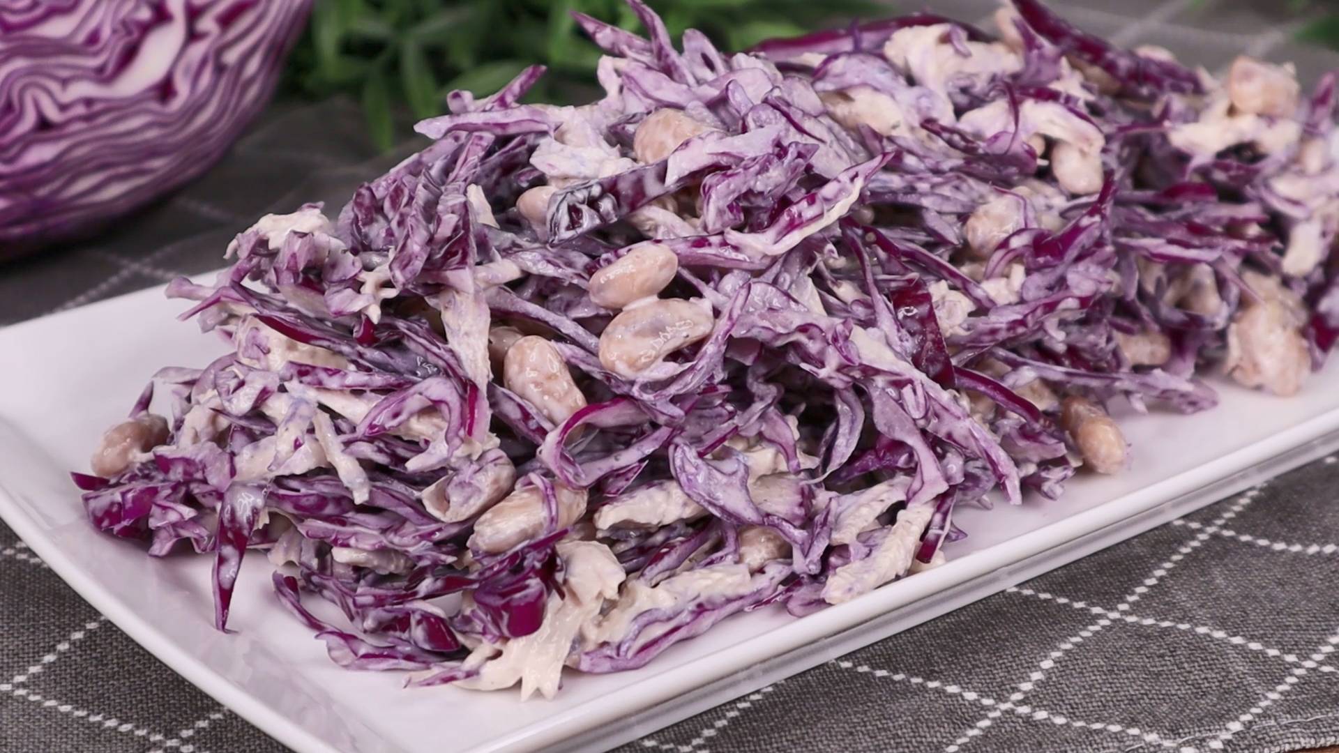 📖Ингредиенты: Капуста краснокочанная: 300г Филе куриное: 1шт Фасоль консервированная: 1банка Майонез: 1 ст.л с горкой Чеснок: 1-2зуб Соль: щепотка