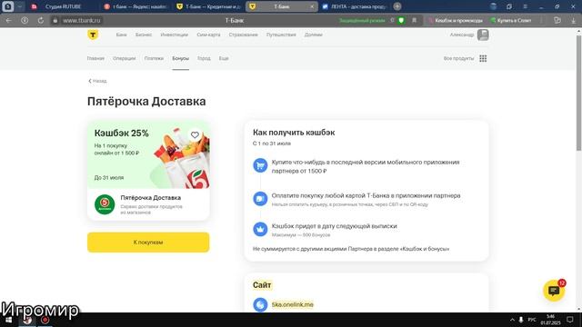 Обзор бонусов и скидок на 1 июля 2025 Т-банк.
